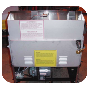 Remove rear cover screws and rear cover from fryer.