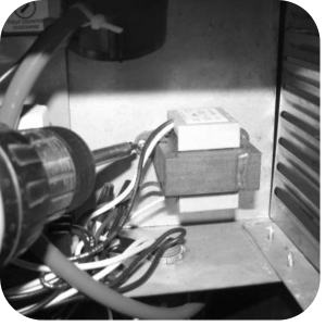 Disconnect transformer wires and remove transformer from unit.