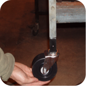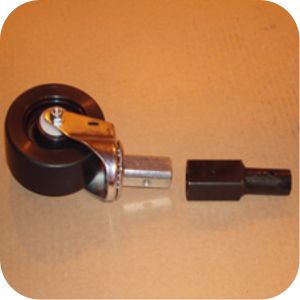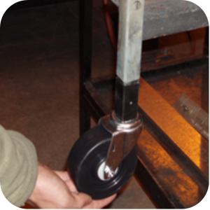 Slide in caster and secure with self drilling screw to leg of fryer.
