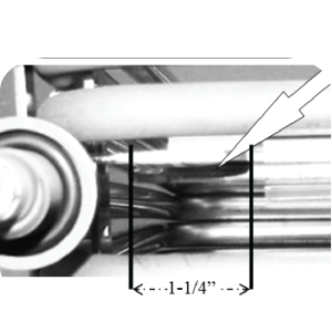 Note: Ensure the high limit bulb is completely through the bracket, showing about 1-1/4 in. from bracket to the tip of the bulb. High limit probs are sensitive to the amount of exposure.