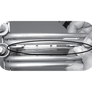 Note: If necessary, squeeze the locking bar and bracket together at the bottom. Ensure the locking bars hook in both the top and bottom slots of the element brackets.