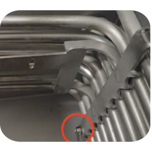 On the left front-side of the element, remove one retaining screw with 5/16 in nut driver and then remove the left front-left side locking bark and bracket.