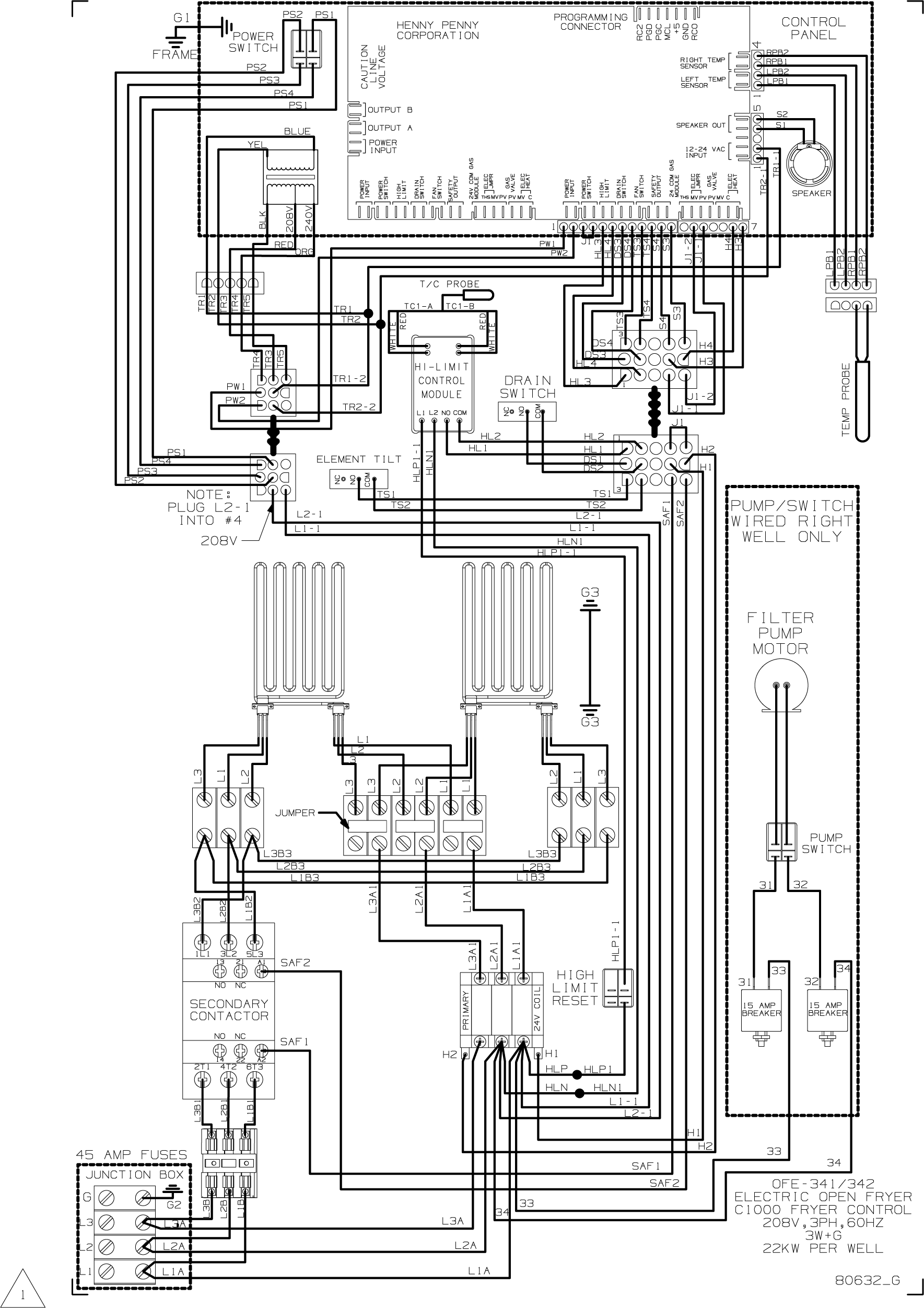 OFE 341/342, C1000, 208V, 60Hz, 3PH, 3W+G Wiring Diagram