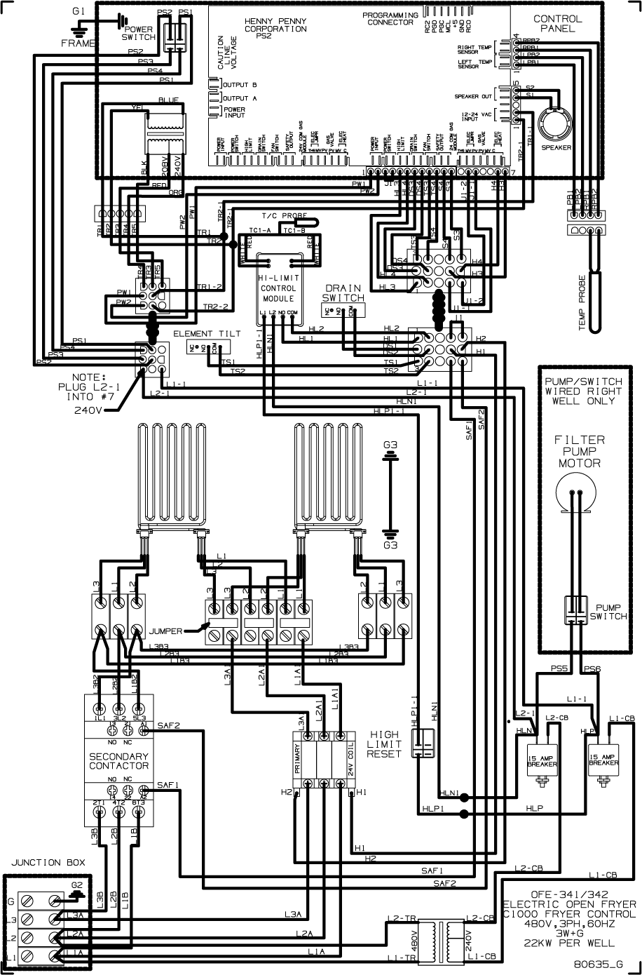 OFE-341/342, C1000, 480V, 60Hz, 3PH, 3W+G Wiring Diagram