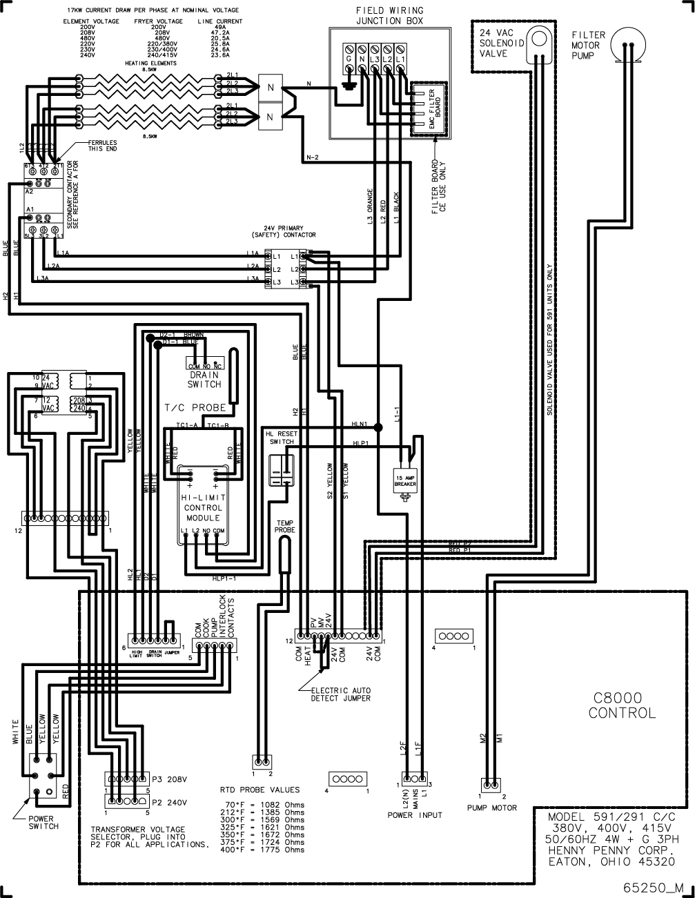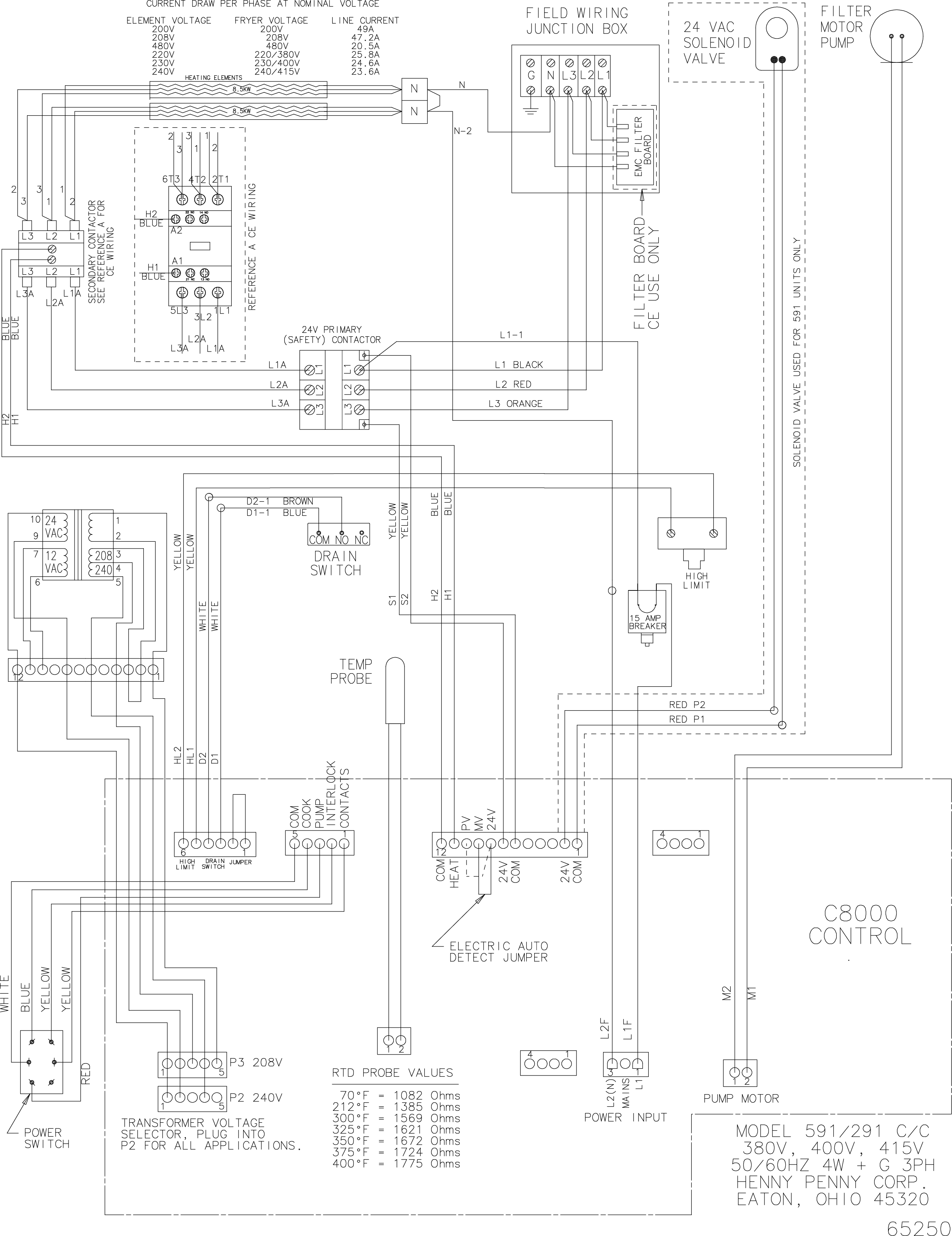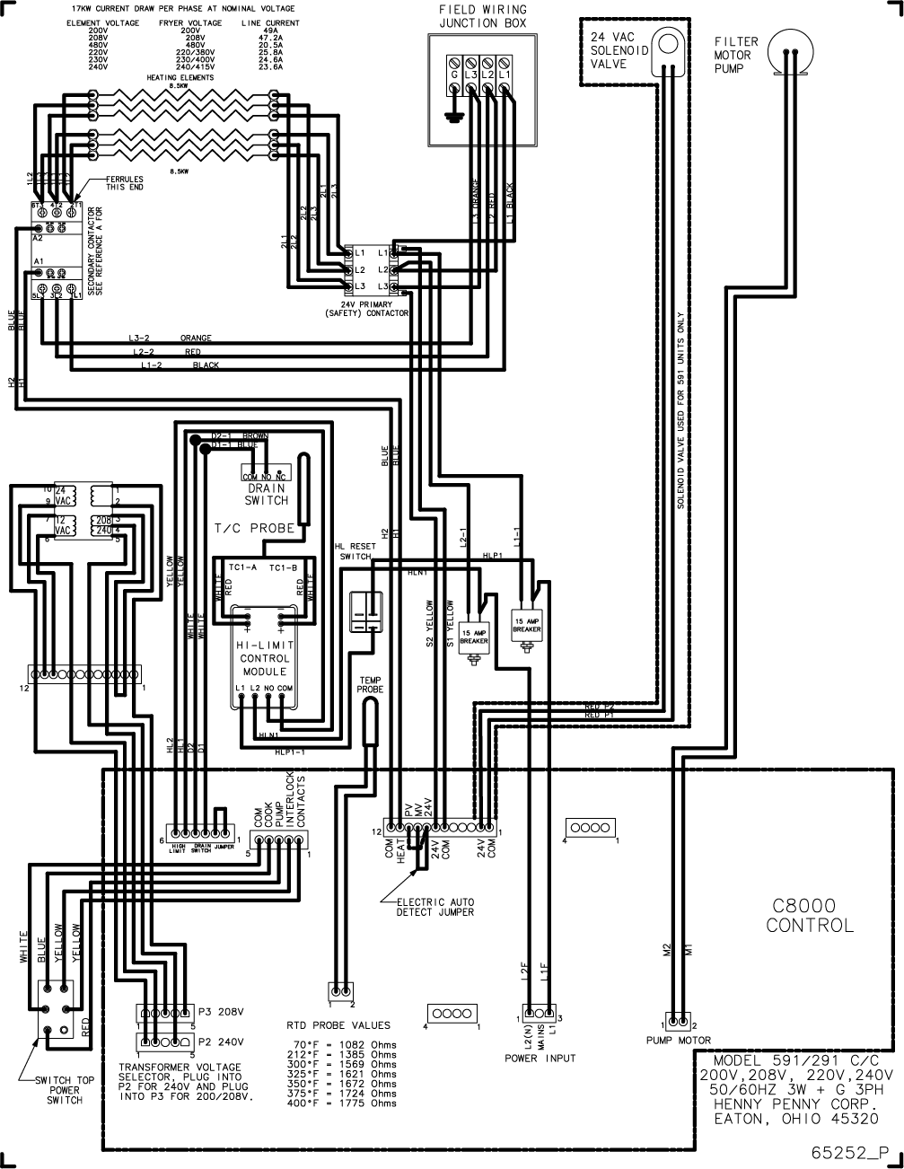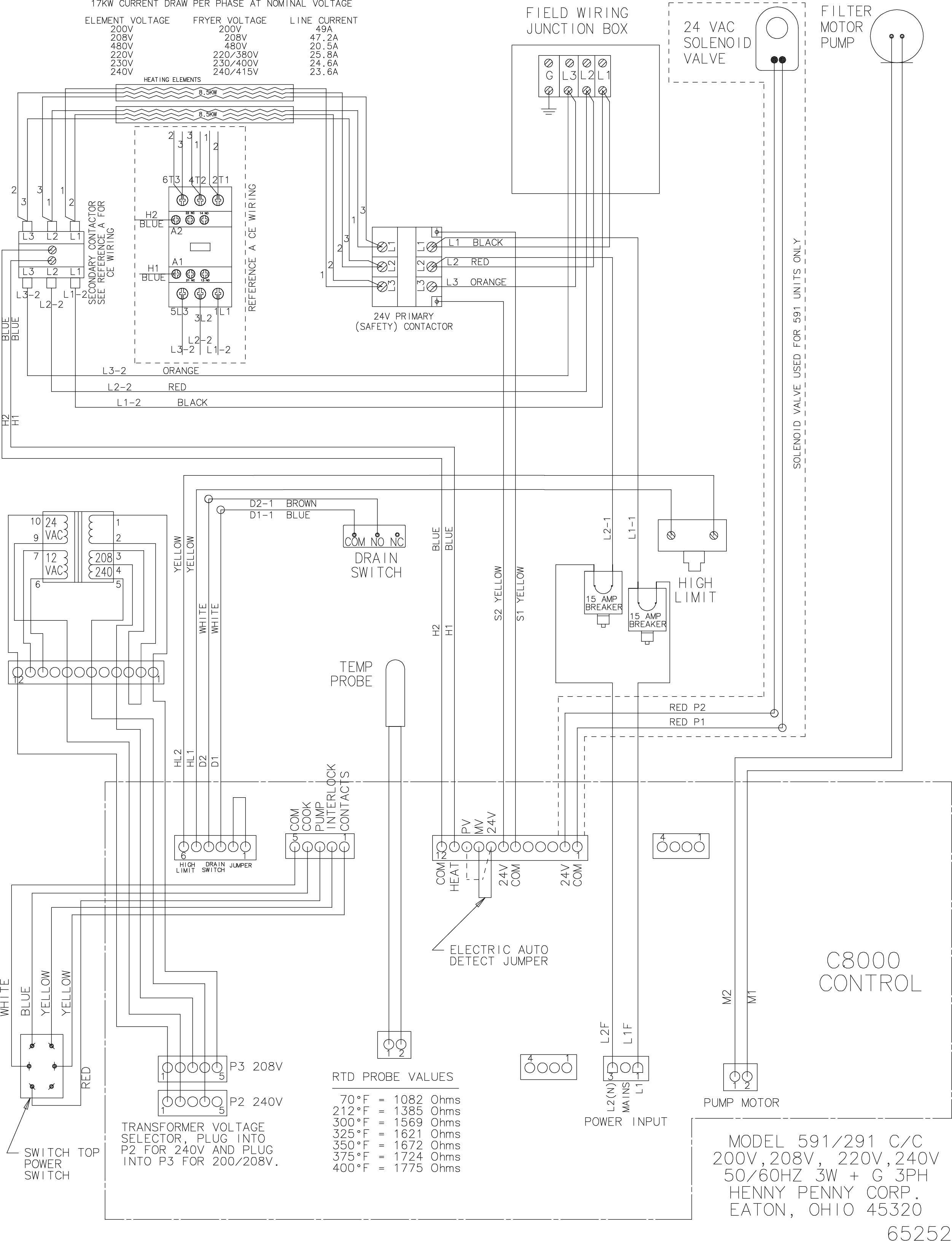 PFE 591 Serial Number AC0608030 & below 200V, 208V, 240V, 50/60 Hz Wiring Diagram
