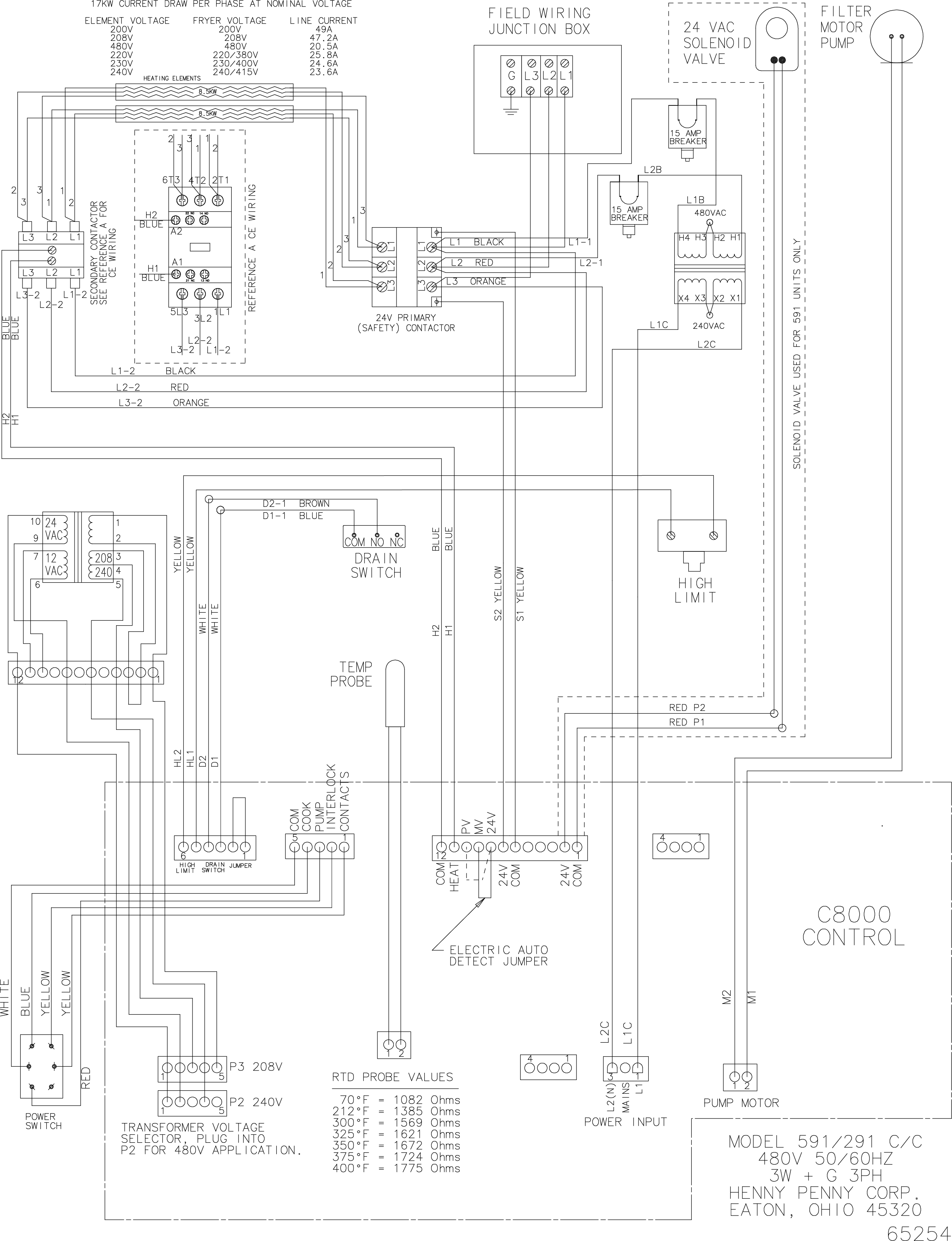 PFE 591 Serial Number AC0608030 & below 480V, 50/60Hz Wiring Diagram