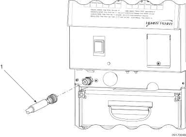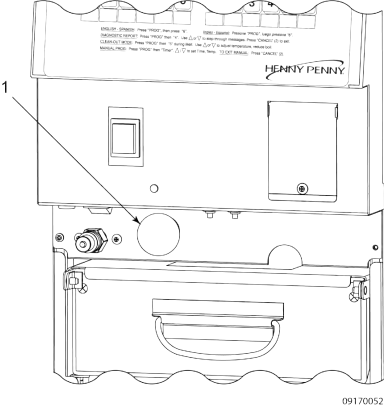 - Pull drain knob (1) out, DRAINING displays and oil drains from vat, and then WASHING displays. The filter pump motor automatically turns on and oil jets on the bottom of the vat wash excess coating down the drain. CLOSE DRAIN displays after the wash cycle.