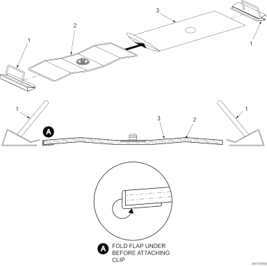 - Place lid (1) onto filter pan. Slide the bent side of the filter pan lid (1) into the lip end of the filter pan base first.