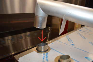 The default position for the steam outlet nozzle is on the rear of the Combi oven. In some kitchens, the steam needs to be released in the front of the oven. The steam diverter kit will redirect the steam output towards the front of the oven.