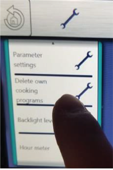Swipe up to find Delete Cooking Programs and tap the checkmark button.