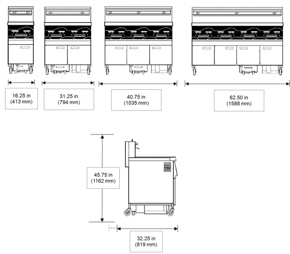 32.25 in (819 mm) | 32.25 in (819 mm) | 32.25 in (819 mm) | 32.25 in (819 mm) |