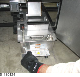 Close and latch the cover and roll oil disposal shuttle to disposal container.