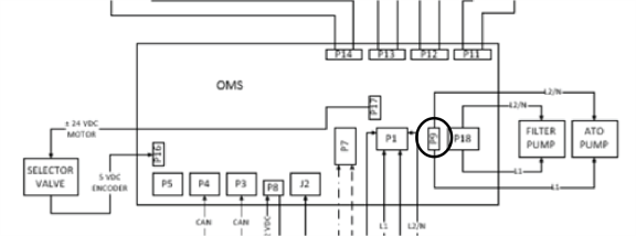 Check the wires between the OMS board and the JIB pump motor for any damage or for short to ground. Replace any damaged wire. If no damage is found to wires, replace the JIB pump motor.