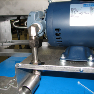 Using a 1 inch wrench, disconnect the line at the elbow or tee on the front of the pump.