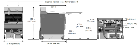 | Volts | Phase | Hertz | kW/vat | Amps/vat | Wire | Cord & Plug /vat |